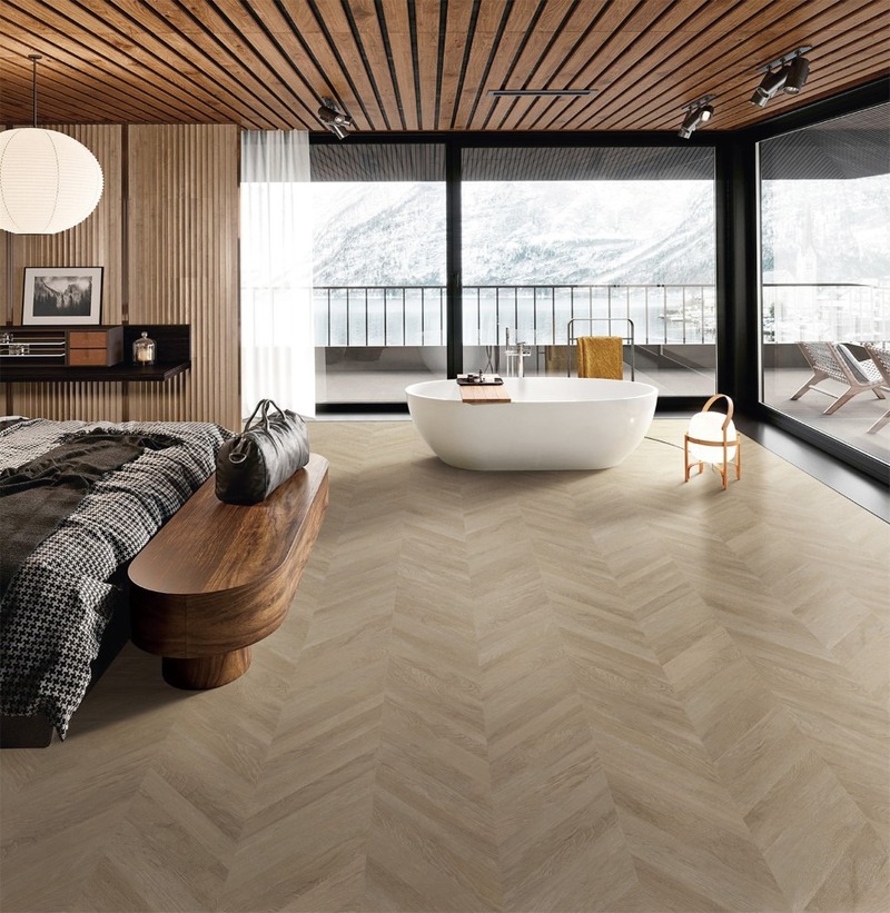 6. Sử dụng gạch lát nền vân gỗ trong phòng ngủ