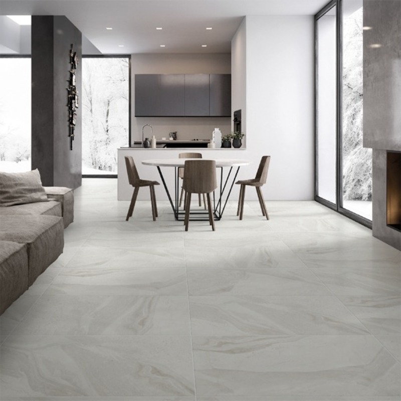 Chất liệu bền và cao cấp: Gạch porcelain xương trắng, độ cứng cao, chống thấm, chống trầy xước – bảo đảm công trình bền đẹp theo thời gian.