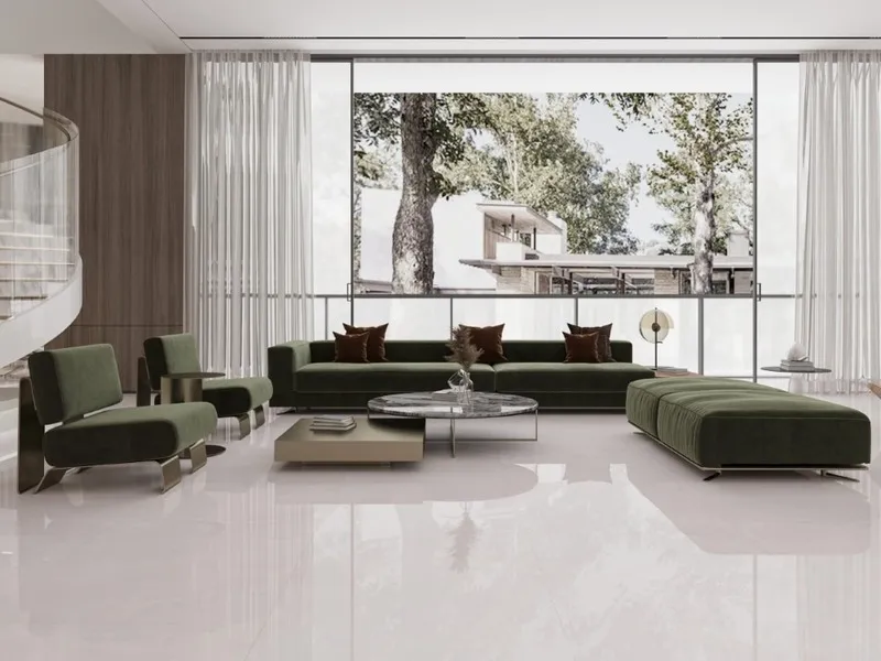 Là dòng gạch mang vẻ đẹp sang trọng của đá tự nhiên vào không gian, gạch Trung Quốc vân đá marble 60x60cm bề mặt bóng kiếng (Polish) với độ phản chiếu ánh sáng cao, là yếu tố giúp căn phòng trông rộng rãi và thoáng đãng hơn. Các mẫu gạch trắng vân mây hay đen vân vàng với đường vân sắc nét được ứng dụng nhiều trong phòng khách, sảnh căn hộ theo phong cách Luxury.