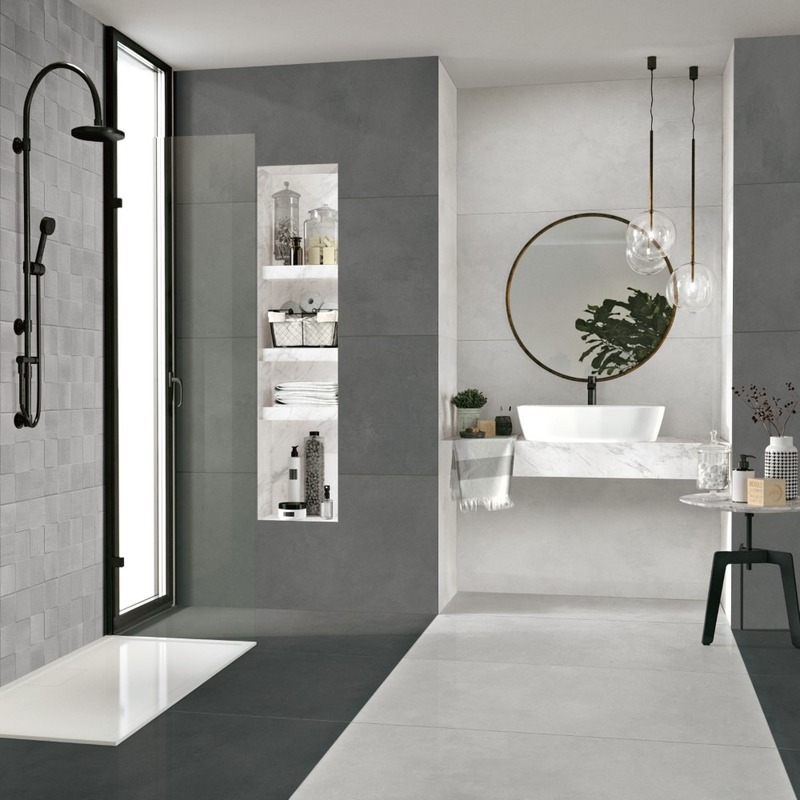 Xu hướng sử dụng gạch ốp 60x120 vân xi măng ngày càng phổ biến trong phòng tắm bởi ưu điểm lớn của dòng gạch này là độ bóng ít, hơi nhám, rất thích hợp khi ốp lát phòng tắm. Bề mặt gạch thường có các tông xám ghi, be đặc trưng, điểm nhẹ hiệu ứng loang màu gợi cảm giác gần gũi như những bức tường bê tông trần trong các không gian resort hiện đại. Chính sự không hoàn hảo ấy lại tạo nên cái chất riêng đầy nghệ thuật cho phòng tắm.