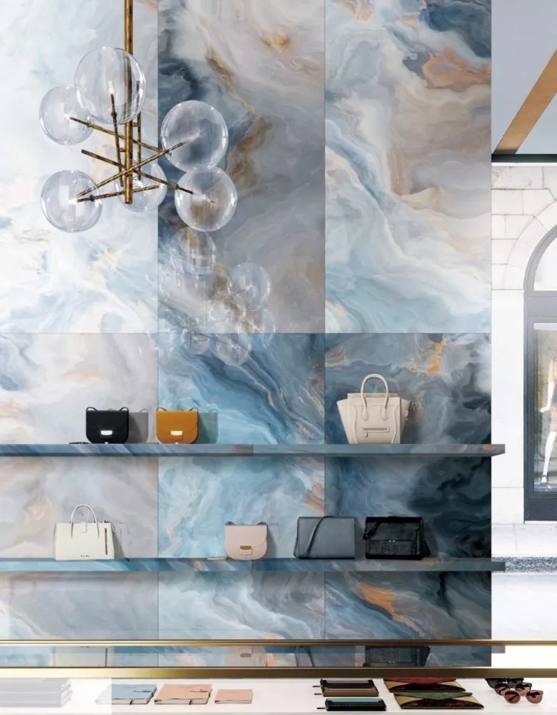 2.1 Gạch ốp tường xanh dương vân đá