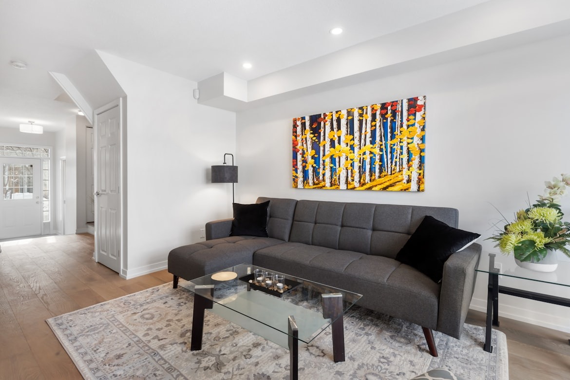 Khi trang trí nội thất phòng khách Tối giản, màu sắc thường xoay quanh các tone trung tính sáng như trắng, xám nhạt hoặc be. Đồ trang trí nội thất phòng khách được lựa chọn rất kỹ, có thể chỉ là một bức tranh đơn sắc, một chiếc đèn cây nhỏ hoặc một bình gốm đơn giản đặt trên bàn trà. Thảm trải sàn thường có màu trơn để không phá vỡ sự liền mạch của không gian.