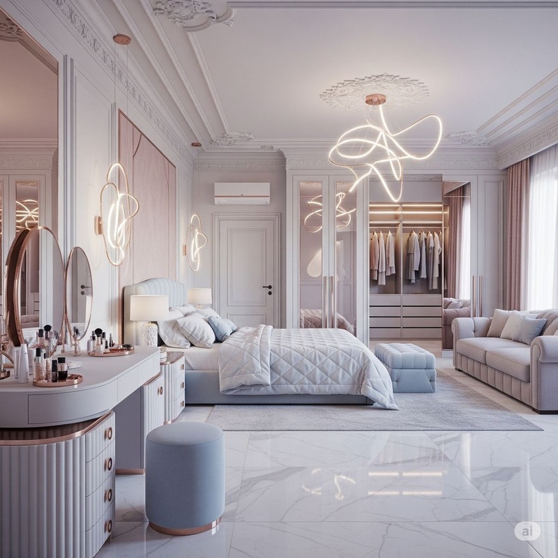 Sự lựa chọn màu sắc gạch lát nền cho phòng ngủ biệt thự Tân cổ điển không còn chỉ tuân theo quy tắc mà còn được thay đổi theo cảm xúc của chủ nhân căn phòng. Nếu gia chủ yêu thích sự tinh tế, nhẹ nhàng, tông màu trung tính như be nhạt, xám be hay vàng nhẹ là những lựa chọn hoàn hảo. Các gam màu này dịu mắt, dễ phối hợp với các chi tiết kim loại trong nội thất mà không quá nặng nề.