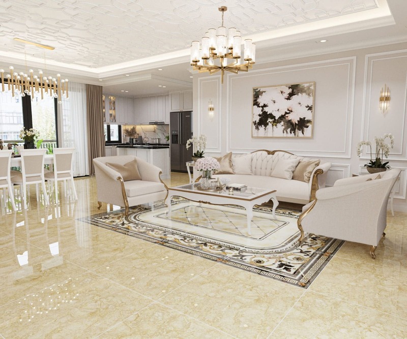 - 3. Những điều cần biết khi chọn gạch lát nền phòng khách biệt thự Tân cổ điển