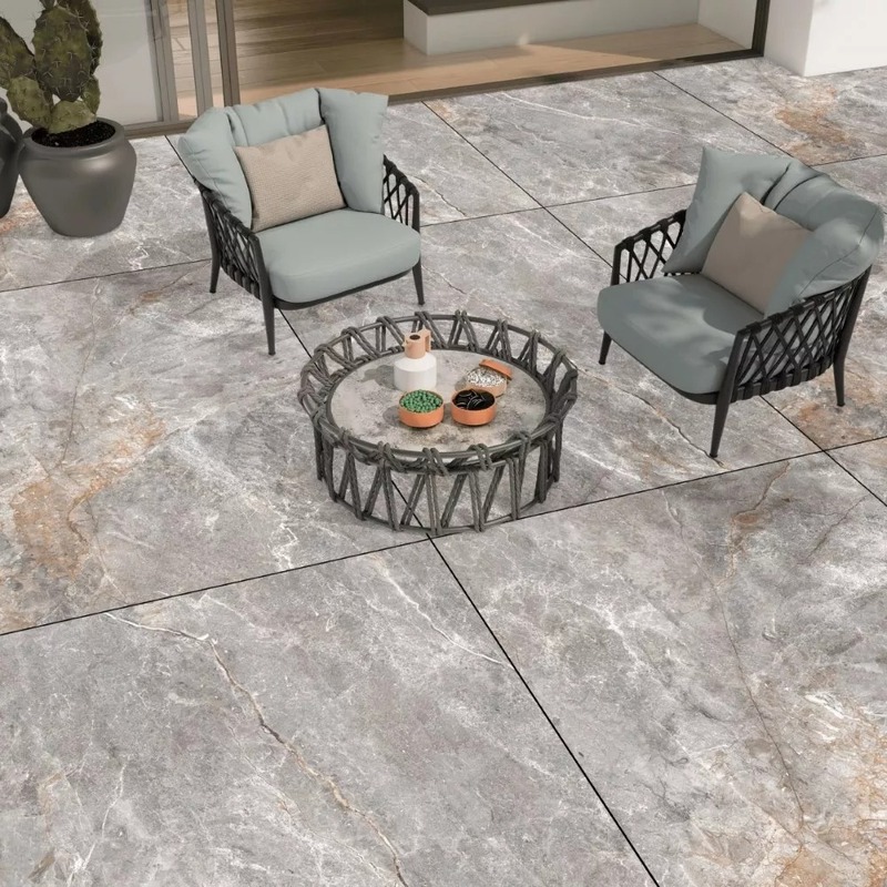 Gạch lát nền vân đá marble là biểu tượng của sự sang trọng trong kiến trúc Tân cổ điển. Bề mặt gạch mang vẻ đẹp mô phỏng đá cẩm thạch tự nhiên, có chiều sâu và sự chuyển màu tinh tế. Những mẫu gạch marble trắng vân xám, kem vân nhẹ hay đen vân trắng thường được các gia chủ lựa chọn vì tạo được hiệu ứng xa hoa nhưng vẫn thanh lịch. Gạch marble khổ lớn giúp phòng khách biệt thự thêm phần tráng lệ, nhất là khi kết hợp với đèn chùm pha lê hoặc nội thất ánh kim.