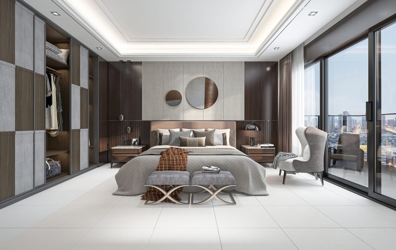 2. Gợi ý chọn màu gạch lát nền và ốp tường cho phòng ngủ biệt thự hiện đại