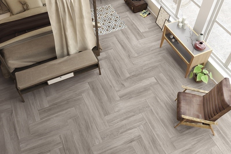 1.2 Gạch vân gỗ lát nền phòng ngủ biệt thự