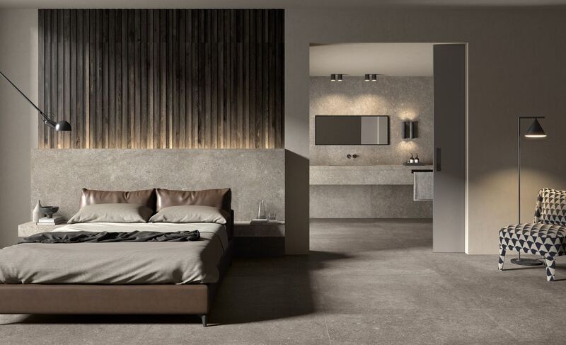 Gạch lát tông xám ghi từ nhạt đến đậm cũng là một gợi ý lý tưởng cho phòng ngủ biệt thự hiện đại. Khi kết hợp với đồ gỗ tự nhiên hay ánh sáng vàng nhẹ, tông xám tạo ra bầu không khí thanh lịch và đẳng cấp. Các không gian biệt thự nhiều cửa kính hoặc hướng sáng tốt đặc biệt phù hợp với tông màu này.