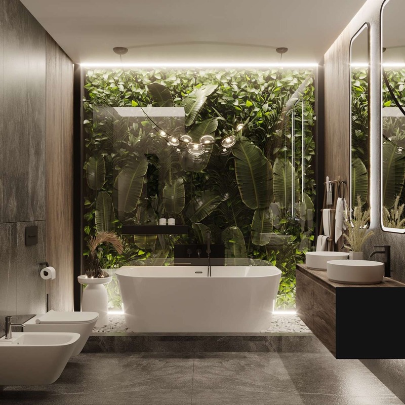 Nhiều kiến trúc biệt thự nhà vườn hiện đại đặc biệt ưa chuộng phong cách phòng tắm Tropical với không gian mở, ánh sáng tự nhiên và cây cối mang tinh thần thư giãn, nghỉ dưỡng, một số xu hướng thiết kế phòng tắm có thể kể đến như như: