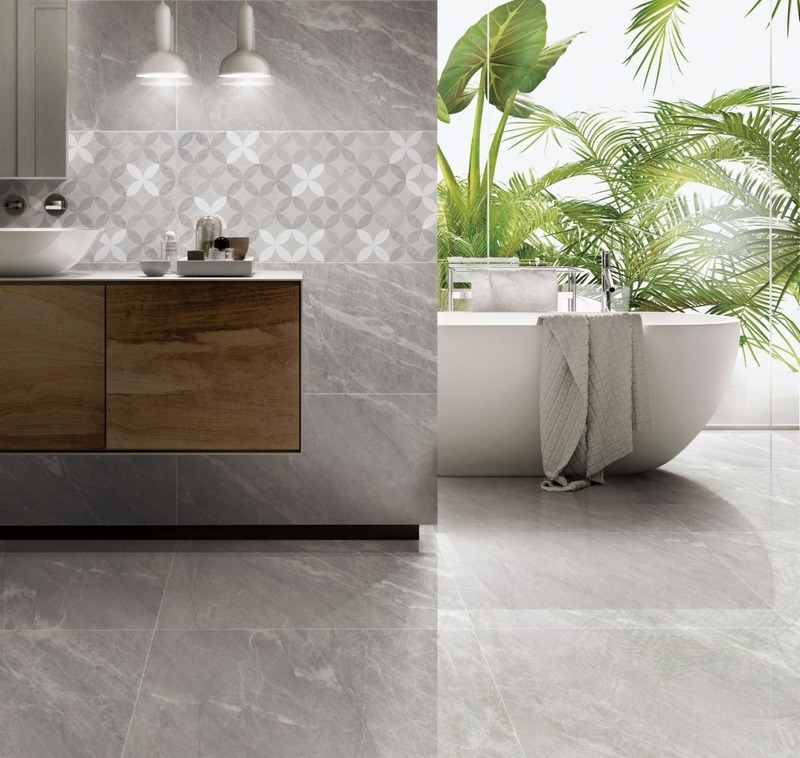 Gạch vân đá là lựa chọn lý tưởng để tạo nên sự bền vững và đẳng cấp cho phong cách Tropical Nhiệt đới. Dòng gạch này mô phỏng chân thực các loại đá tự nhiên quý hiếm như Marble tự nhiên với các đường vân tinh tế, độc đáo. Khi sử dụng trong phòng tắm Tropical, ưu tiên các tông màu sáng như trắng, be, hoặc xám nhạt để tạo cảm giác sạch sẽ và thoáng đãng, đồng thời làm nổi bật màu xanh tươi của cây cảnh.