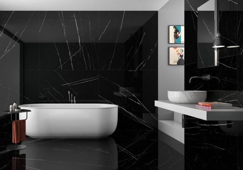 Gạch vân đá tự nhiên luôn là sự lựa chọn hàng đầu trong các thiết kế phòng tắm biệt thự hiện đại. Sức hút của dòng gạch này đến từ những đường vân mô phỏng chân thực đá Marble, Onyx hay Travertine, vốn là các chất liệu biểu tượng của sự sang trọng. Mỗi mẫu gạch như một mảnh đá được khai thác từ tự nhiên, mang theo dấu ấn riêng không trùng lặp. Những gam màu trung tính như xám khói, kem be, đen ánh kim…đang ngày càng được ưu ái vì đem lại cảm giác thanh lịch, đồng thời giữ cho phòng tắm luôn sạch và hiện đại.