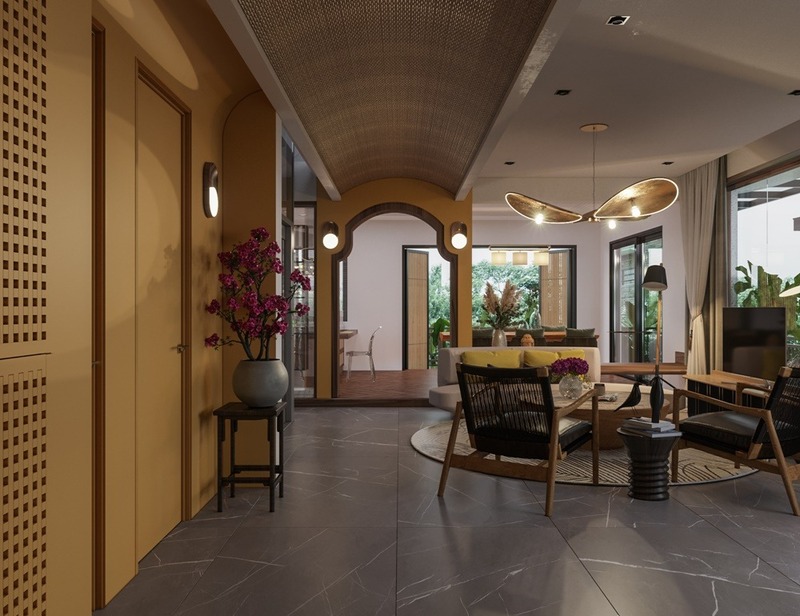 29+ mẫu gạch lát nền phòng khách biệt thự phong cách Indochine mới nhất