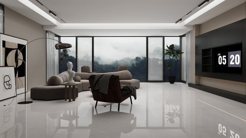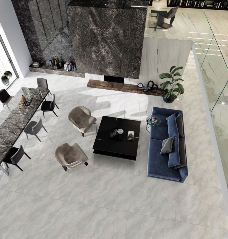 Đối với những gia chủ yêu thích phong cách sang trọng, cá tính, việc kết hợp gạch lát nền tông trắng vân đá với nội thất tông đen, xám đậm hoặc kim loại ánh vàng, ánh đồng sẽ tạo hiệu ứng tương phản rất ấn tượng. Nền gạch trắng đóng vai trò làm phông nền, giúp các chi tiết nội thất trở nên nổi bật và có chiều sâu hơn, thường được ứng dụng trong biệt thự, nhà phố cao cấp hoặc không gian hiện đại, sang trọng.