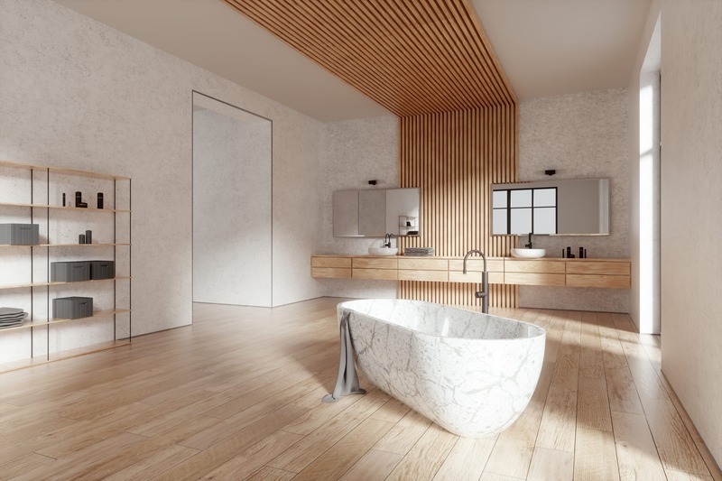 Các gam màu nâu sáng, vàng nhạt hay ghi gỗ luôn được yêu thích bởi mang lại sự ấm áp và tự nhiên, đặc biệt phù hợp với phong cách Nhật Bản tối giản hoặc phong cách Bắc Âu tinh tế. Điểm nổi bật của gạch vân gỗ là tái hiện trọn vẹn vẻ đẹp mộc mạc của sàn gỗ thật, nhưng vẫn đảm bảo khả năng chống thấm, chống trơn và độ bền vượt trội cho không gian nhà tắm.