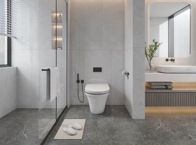 Những gam màu trung tính như trắng, xám, be nhạt… giúp phòng tắm dễ phối với nội thất, giữ vẻ hiện đại mà không lỗi thời. Hơn cả về thẩm mỹ là chất lượng vượt trội từ xương porcelain hoặc xương bán sứ với khả năng chống thấm, chịu ẩm cao, phù hợp cho không gian ẩm ướt như nhà tắm.