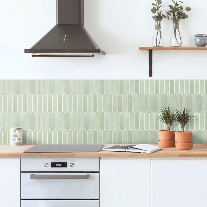 Gạch thẻ dáng chữ nhật nhỏ gọn với những gam màu thanh nhã như trắng, be, ghi hay xanh pastel… luôn tạo nên một không gian bếp lạ mắt và ấn tượng. Sự tinh tế nằm ở nét đơn giản mà vẫn cuốn hút, giúp gạch thẻ dễ dàng phối hợp với nhiều phong cách nội thất, từ hiện đại tối giản đến hơi hướng vintage. Không chỉ đẹp mắt, bề mặt phẳng mịn còn hỗ trợ lau chùi nhanh chóng, giữ cho căn bếp luôn sạch sẽ và đầy cảm hứng.