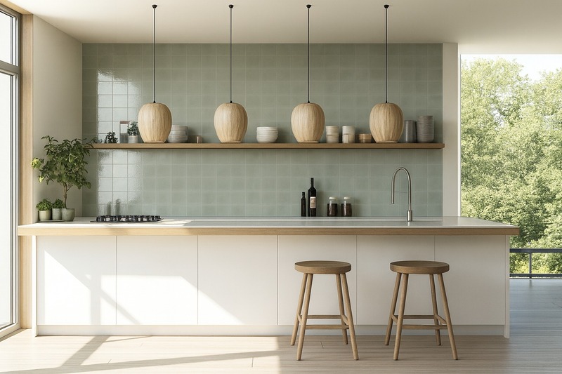 Trong các căn hộ, nhà phố hay chung cư, gạch ốp tường trơn, gạch vân đá men bóng với gam màu trung tính thường được ưa chuộng giúp đồng bộ với bàn bếp và tạo cảm giác hài hòa. Những không gian đòi hỏi tính thẩm mỹ cao như villa, homestay hay khu nghỉ dưỡng, thường được ốp bằng gạch thẻ, gạch bông hoặc các mẫu gạch trang trí để tạo điểm nhấn. Tuy nhiên, anh chị chỉ nên ốp một mảng tường thay vì ốp quá nhiều sẽ giúp gian bếp vừa nổi bật vừa giữ được sự tinh tế, không gây rối mắt.