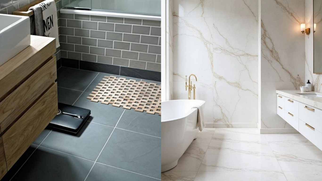 Gạch lát nền bề mặt bóng mịn thường được ưa chuộng vì nhìn sang trọng, tuy nhiên không thích hợp cho nhà tắm. Khi tiếp xúc với nước xà phòng, bề mặt men bóng trở nên cực kỳ trơn, dẫn đến nguy cơ lớn trơn trượt, đặc biệt ở người lớn tuổi và trẻ nhỏ.