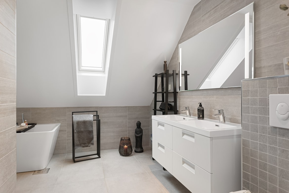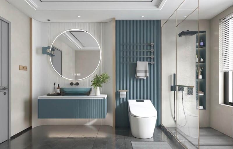 Bên cạnh thông gió, hệ thống chiếu sáng phòng tắm cũng cần được đầu tư đúng mức. Hiện nay, đèn nhà tắm ngày càng đa dạng và hiện đại như đèn LED âm trần chống ẩm, đèn gương tích hợp cảm biến, đèn hắt tường tạo hiệu ứng ánh sáng dịu nhẹ.