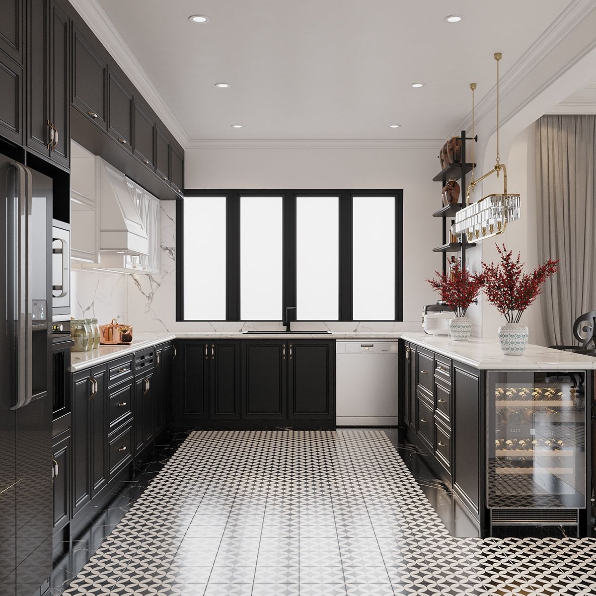 Gạch lát nền phòng bếp phong cách Tân cổ điển