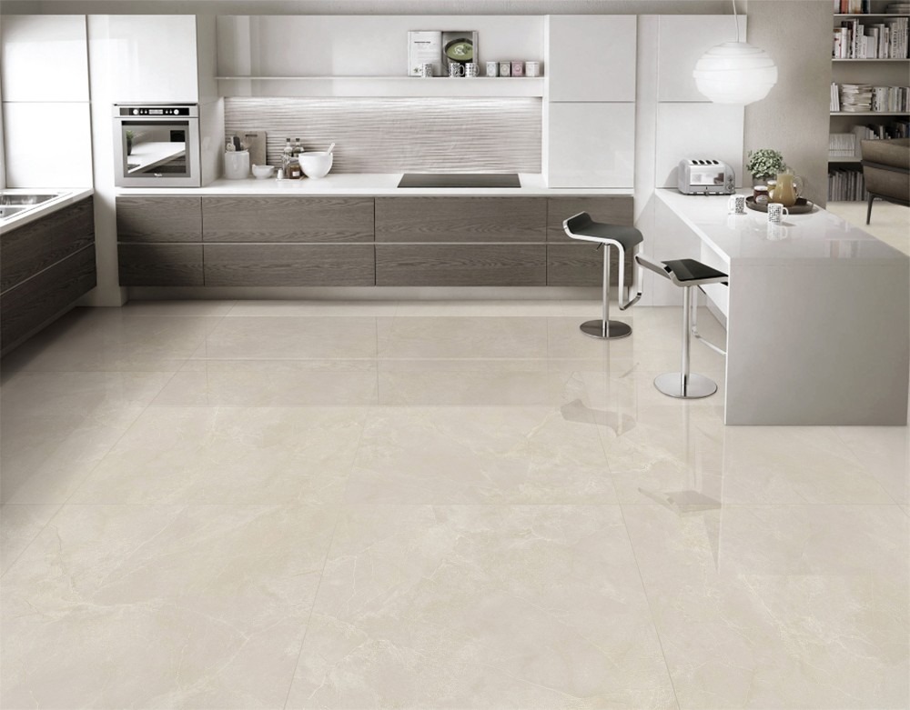 Gạch vân đá là một trong những dòng gạch được dùng phổ biến nhất để lát nền phòng bếp vì tính đa di năng của nó đem lại. Là sự lựa chọn hoàn hảo cho trải nghiệm không gian bếp đảm bảo đủ tiêu chí về mặt công năng và tính thẩm mỹ. Sự kết hợp giữa bề mặt men bóng và những đường vân đá tự nhiên tạo nên vẻ đẹp sang trọng, quý phái tựa nét đẹp tự nhiên như các phiến đá. Ưu tiên sử dụng những dòng gạch họa tiết bóng mờ, bề mặt dễ lau chùi, chống thấm và chịu lực tốt cho phòng bếp.