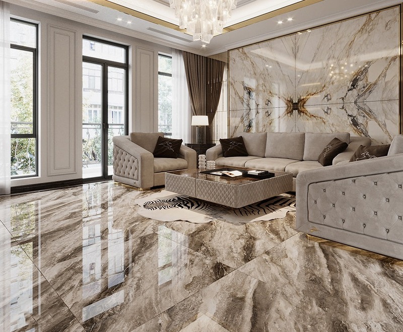 Khi sở hữu không gian phòng khách rộng, gia chủ hoàn toàn có thể chọn gạch khổ lớn để thể hiện sự sang trọng và đẳng cấp. Các kích thước 60x120cm, 1mx1m hoặc các dòng gạch khổ siêu lớn hiện là xu hướng chủ đạo trong các thiết kế biệt thự và nhà cao trần.