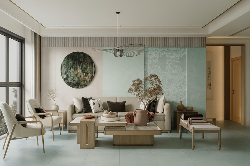 Màu sắc giữ vai trò quan trọng trong việc định hình phong cách phòng khách. Nếu muốn không gian mở và liền mạch, nên chọn gạch ốp cùng tông với nền. Còn khi muốn tạo điểm nhấn hoặc chiều sâu, có thể phối màu đối lập nhẹ giữa tường và sàn, miễn sao tổng thể vẫn hài hòa với đồ nội thất và ánh sáng tự nhiên.