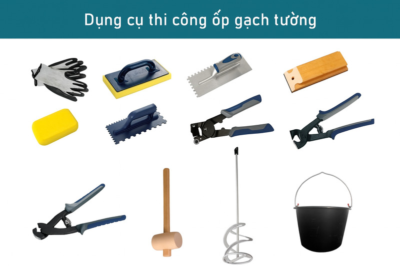 Vật liệu thi công gồm gạch ốp, keo dán gạch (hoặc vữa xi măng), ke ốp, thước nivo, bay, búa cao su và thùng trộn keo. Nên chọn keo dán gạch chất lượng từ showroom uy tín để tránh bong tróc khi thay đổi nhiệt độ hoặc độ ẩm. Gạch nên được kiểm tra kỹ trước khi thi công, nên loại bỏ viên sứt, méo hoặc lệch màu. Việc chuẩn bị kỹ giúp quá trình thi công diễn ra nhanh, đều và tránh sai sót cho công trình.