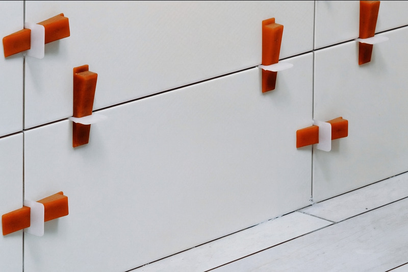 2.5. Dán gạch và căn chỉnh bằng ke ốp gạch