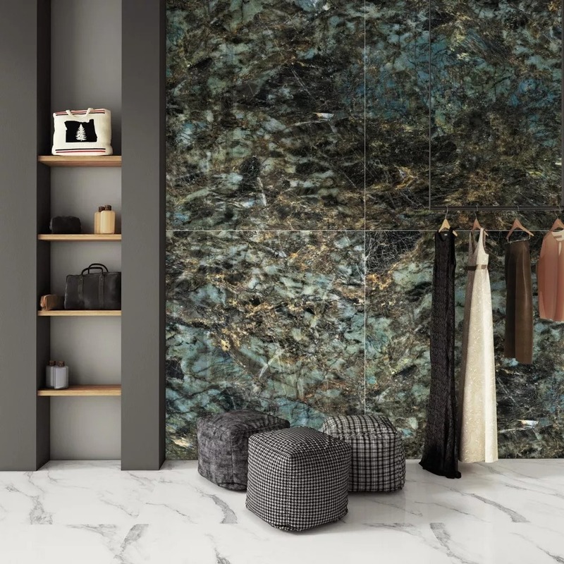 Nhờ kích thước vượt trội, gạch Ấn Độ khổ lớn tựa tấm đá lớn, gạch 120x180cm giúp giảm thiểu đường ron mạch, phù hợp để ốp tường hay lát nền phòng khách, sảnh, phòng tắm cao cấp hay các có diện tích rộng. Dòng gạch này thường sở hữu vân đá marble, onyx hoặc hiệu ứng bề mặt carving tinh xảo, mang lại chiều sâu và sự sang trọng rõ rệt. Màu sắc đa dạng từ be sáng, xám khói đến đen huyền bí, giúp tôn lên vẻ đẹp hiện đại và đẳng cấp cho từng công trình.