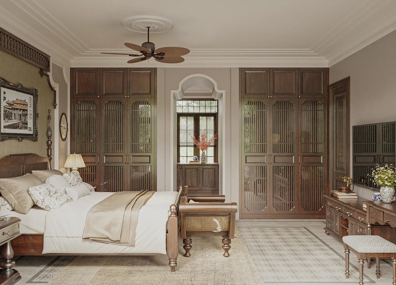 1. Đặc trưng của phòng ngủ biệt thự phong cách Indochine