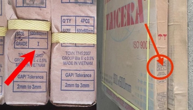 - Ký hiệu loại gạch: Gạch Taicera loại 1 có ký hiệu trên vỏ thùng là "Loại 1" hoặc "Grade I".