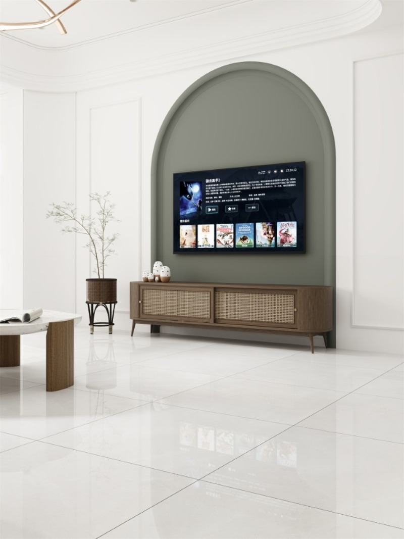 Phòng khách là không gian trung tâm, nơi thể hiện gu thẩm mỹ của gia chủ. Gạch lát nền 80x80cm với bề mặt sáng bóng, vân đá hoặc vân mây khổ lớn giúp căn phòng thêm phần sang trọng và rộng mở. Những gam màu sáng như trắng, kem, ghi xám thường được ưa chuộng để tạo hiệu ứng thoáng đãng, hiện đại.