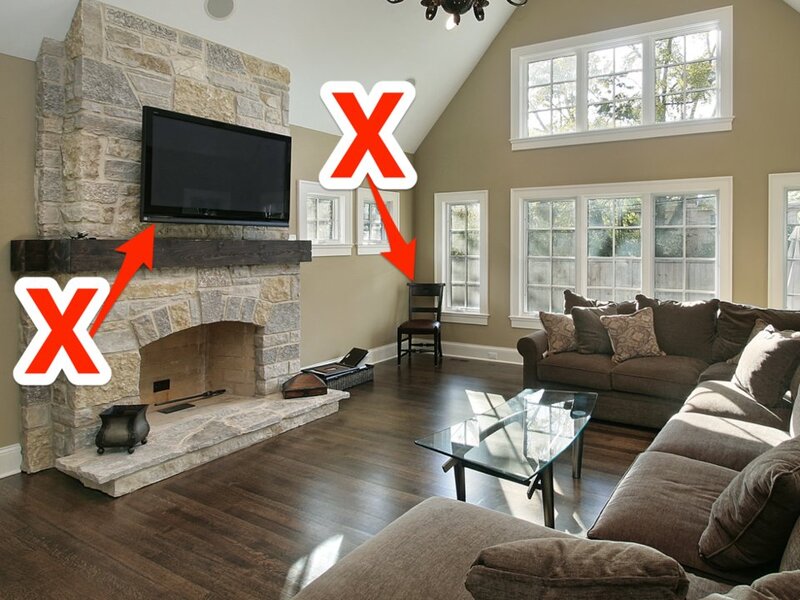 Nhiều người cho rằng kê, treo đồ nội thất sát tường sẽ giúp phòng rộng hơn, nhưng nếu áp dụng máy móc sẽ khiến phòng khách bị mất cân bằng. Trung tâm phòng khách trở nên trống trải, trong khi các mảng tường lại quá nặng nề, thiếu sự kết nối giữa các khu vực chức năng khác.