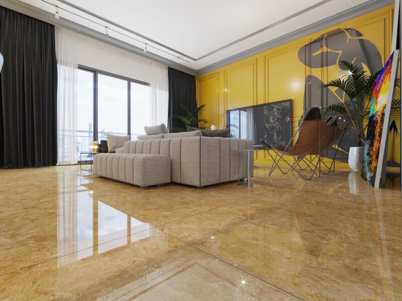 Gạch lát nền hoặc ốp tường có màu sắc quá đậm, họa tiết cầu kỳ dễ khiến phòng khách trở nên rối mắt và khó phối nội thất. Ngoài ra, màu gạch ốp lát quá nổi thường nhanh gây cảm giác lỗi thời, khiến gia chủ dễ chán và khó thay đổi phong cách về sau. Gia chủ nên chọn các tông màu gạch ốp lát phòng khách tông màu an toàn như kem, trắng, xám,... vừa dễ phối nội thất vừa giúp tôn lên những món nội thất tông màu nổi bật.