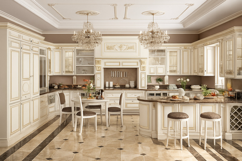 Chiêm ngưỡng loạt mẫu gạch lát nền phòng bếp biệt thự phong cách Tân cổ điển
