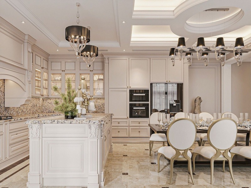 1. Xu hướng thiết kế mới trong phòng bếp biệt thự phong cách Tân cổ điển