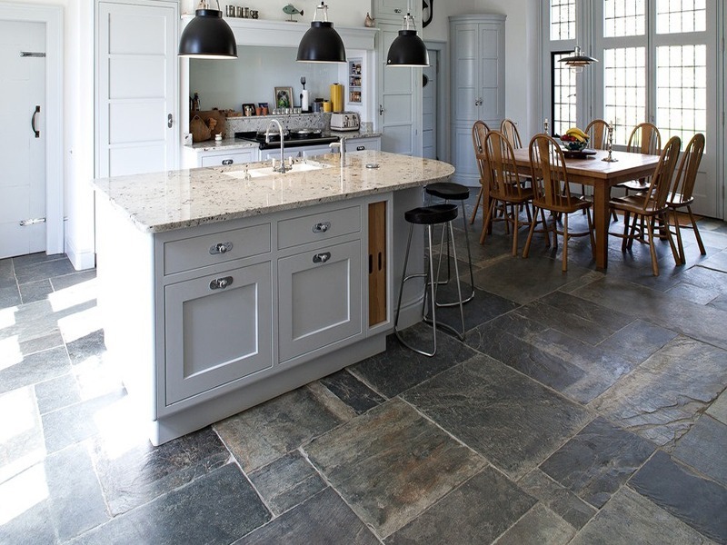 2.1 Gạch vân đá lát nền phòng bếp biệt thự