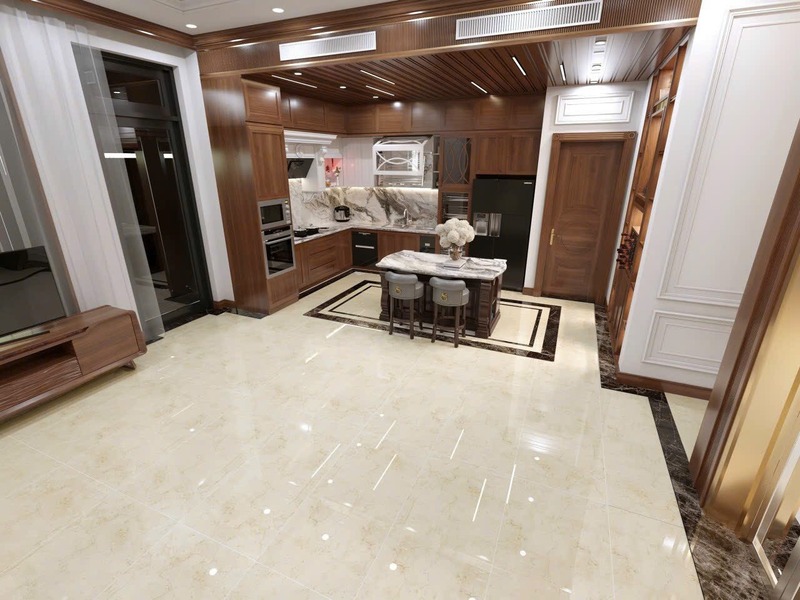 Phòng bếp biệt thự Tân cổ điển không chỉ là không gian nấu nướng mà còn là biểu tượng của sự xa hoa và gu thẩm mỹ tinh tế của gia chủ. Với diện tích rộng lớn, việc lựa chọn màu và mẫu gạch lát nền trở thành một quyết định cần cân nhắc để tôn vinh trọn vẹn vẻ đẹp của nội thất, vừa đảm bảo sự sang trọng, đẳng cấp vượt thời gian.