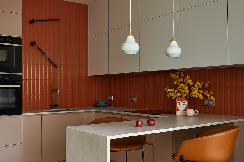 Gạch có màu sắc nổi bật phù hợp với những ai yêu thích sự sáng tạo và muốn biến căn bếp thành nơi truyền cảm hứng mỗi ngày. Khi được kết hợp khéo léo, các gam màu này không gây rối mắt mà còn mang lại cảm giác tươi mới, vui tươi và tràn đầy năng lượng. Nếu sợ quá chói, có thể chỉ sử dụng một mảng tường nhấn, chẳng hạn khu vực phía sau bếp nấu, còn lại vẫn giữ màu trung tính để tổng thể cân bằng hơn.