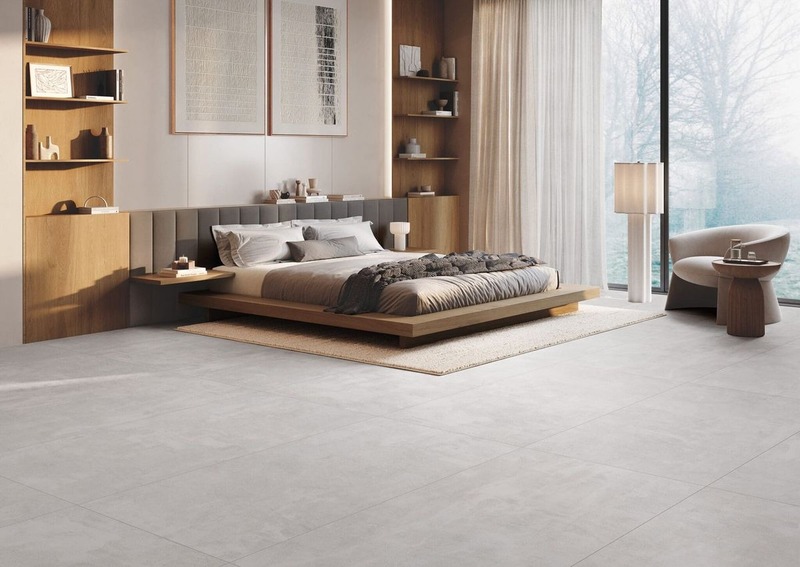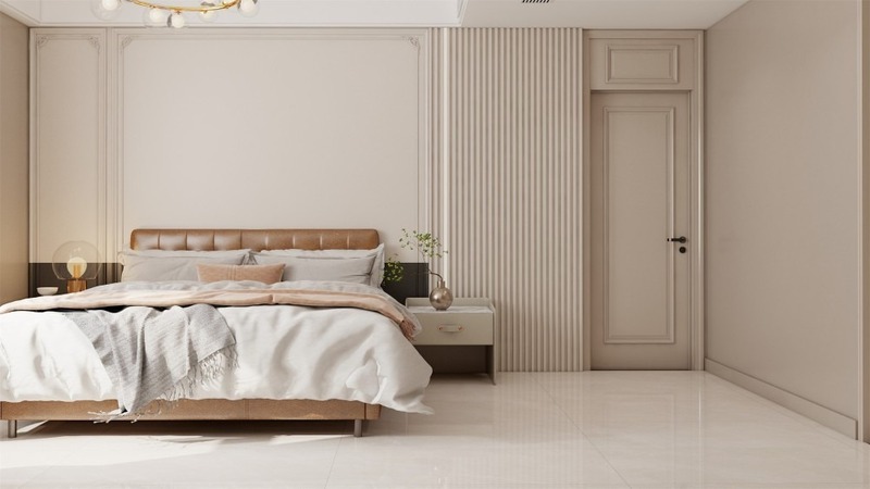 Phòng ngủ nhỏ dưới 12m²: Chọn gạch lát nền tông sáng như kem, trắng hoặc ghi nhạt giúp tạo cảm giác rộng rãi và thoáng đãng hơn.