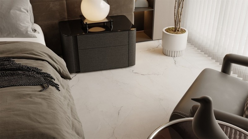 - Đối với không gian Tân cổ điển, phòng ngủ sẽ trở nên trang nhã hơn khi sử dụng gạch vân đá trắng, kem, be hoặc ghi nhạt có bề mặt bóng mờ.