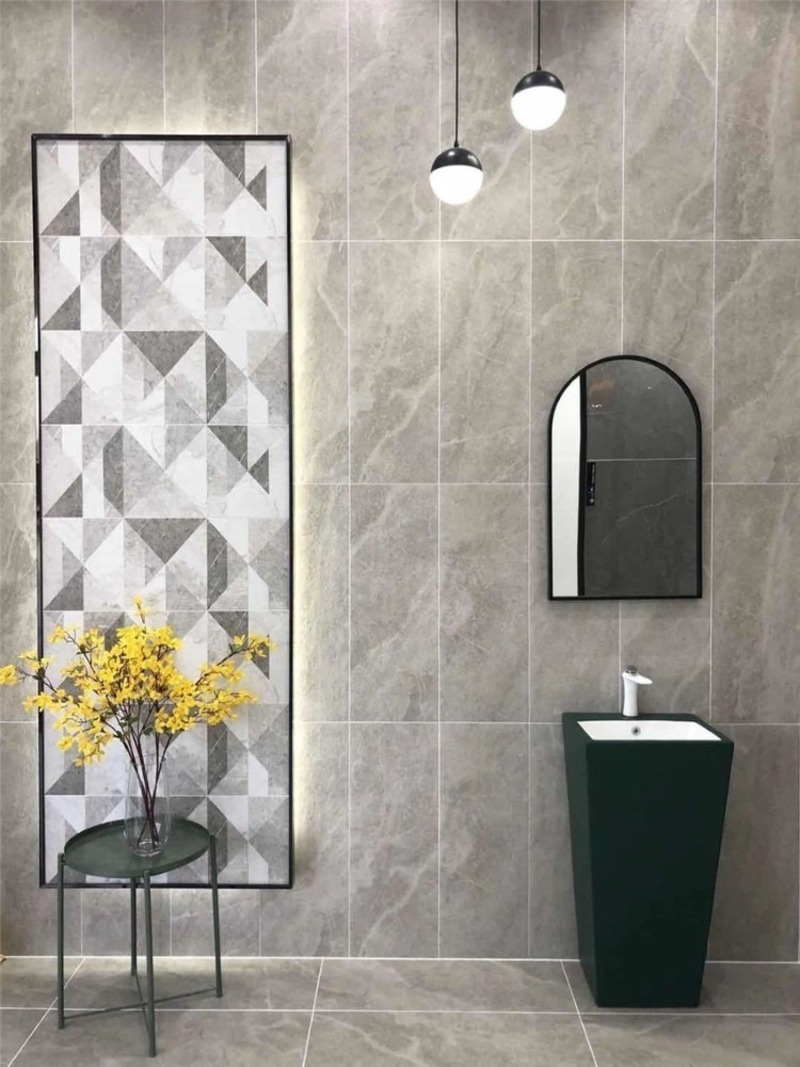 Mang hơi thở của thiết kế hiện đại, gạch HLA66009VA với vân xi măng xám tự nhiên kết hợp gạch bông trang trí cổ điển tạo nên cảm giác phóng khoáng, cá tính nhưng vẫn đầy tinh tế. Bề mặt men mờ lì đem lại hiệu ứng ánh sáng dịu, khiến phòng tắm trở nên ấm áp và thư giãn hơn. Với xương porcelain siêu bền, chống thấm vượt trội, mẫu gạch này không chỉ đẹp mà còn bền bỉ theo thời gian.