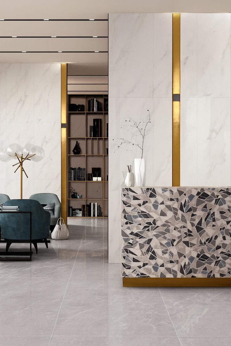 Nếu muốn tìm một loại gạch vừa mang tính hiện đại, vừa thể hiện đẳng cấp, gạch 60x120 chính là lựa chọn hàng đầu. Kích thước lớn giúp giảm đáng kể đường ron, tạo cảm giác mảng tường liền mạch, sang trọng và cao cấp. Các dòng gạch 60x120 thường có độ phẳng và độ bóng cao, vân gạch tinh tế như đá marble tự nhiên. Gạch khổ lớn màu trắng đặc biệt phù hợp với phong cách nội thất hiện đại, tân cổ điển hoặc tối giản, nơi ánh sáng và sự tinh tế được đặt lên hàng đầu.