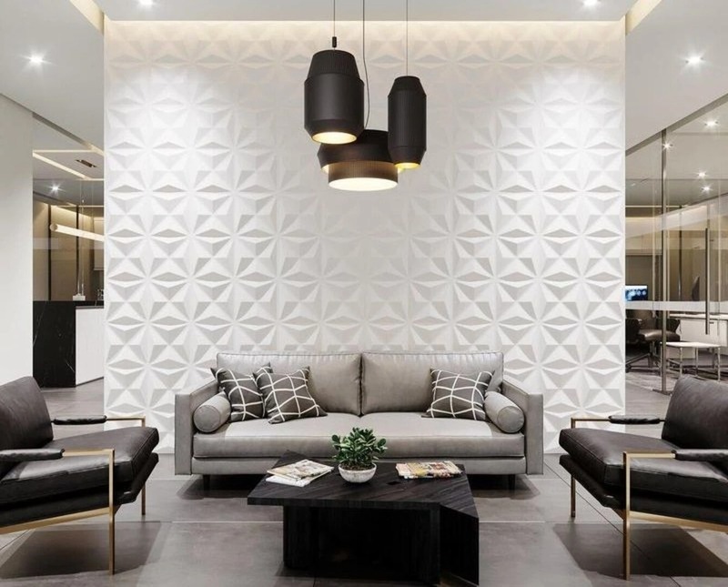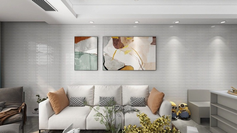 1. Các mẫu gạch ốp tường phòng khách màu trắng theo kích thước phổ biến