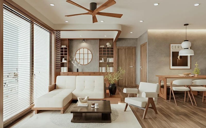 Tiêu chí hàng đầu của phong cách Nhật là chọn các gam màu trung tính, nhạt và ấm, bao gồm trắng be, xám nhạt, nâu đất hoặc các màu mô phỏng màu gỗ nhạt. Những gam màu này không chỉ tạo cảm giác yên bình, thư thái mà còn là phông nền lý tưởng cho các vật liệu tự nhiên khác. Tuyệt đối nên tránh các màu quá sặc sỡ hoặc có độ tương phản cao, gây nhiễu thị giác.