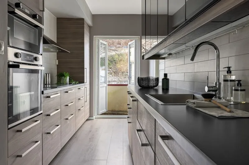 Phòng khách thông với bếp hoặc hành lang: Nên chọn loại gạch đồng nhất về tông màu hoặc cùng bộ sưu tập để không bị rối mắt.